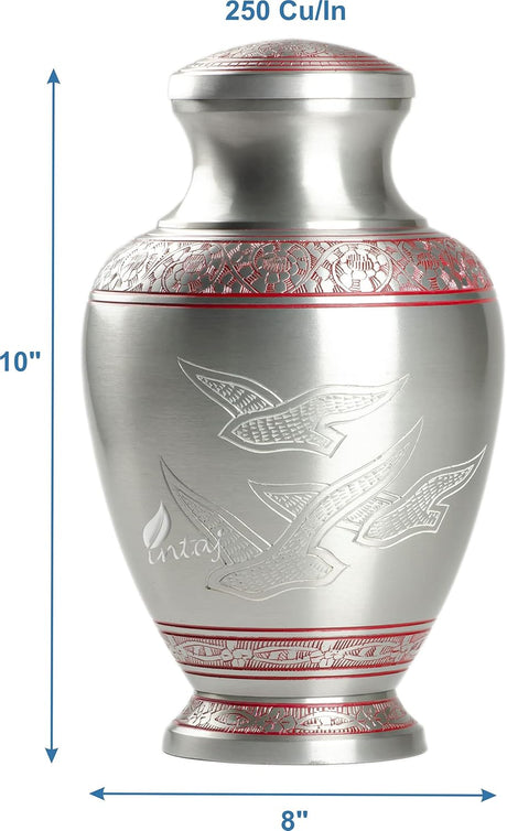 The weight of the urn varies slightly by model, but typically they weigh around 4 to 6 pounds when empty, making them sturdy yet manageable for handling and display.