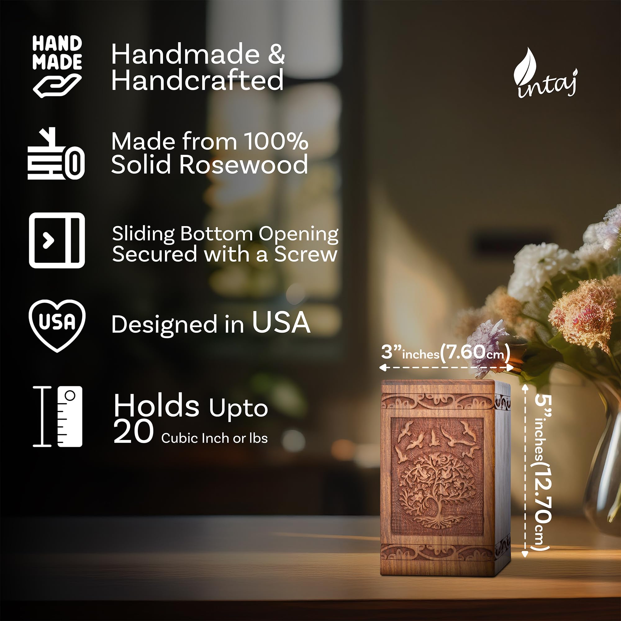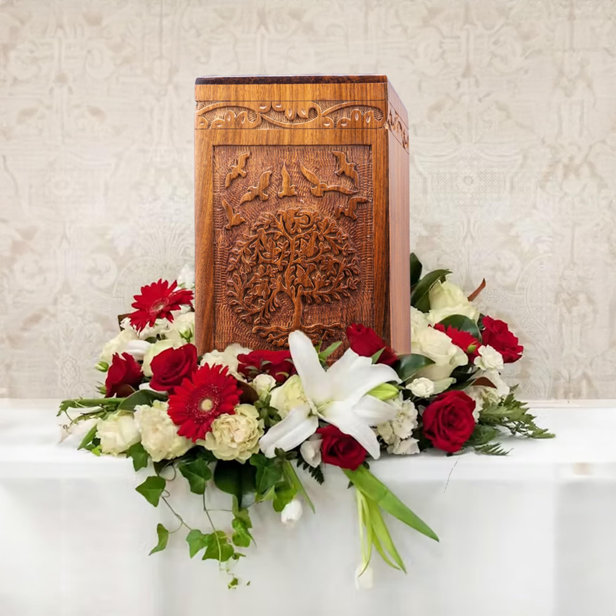 Tree of life Rosewood Urn is truly Hand carved by STAR INDIA CRAFT's Skilled Craftsmen to ensure each CREMATION URN is Unique & Affordable.
