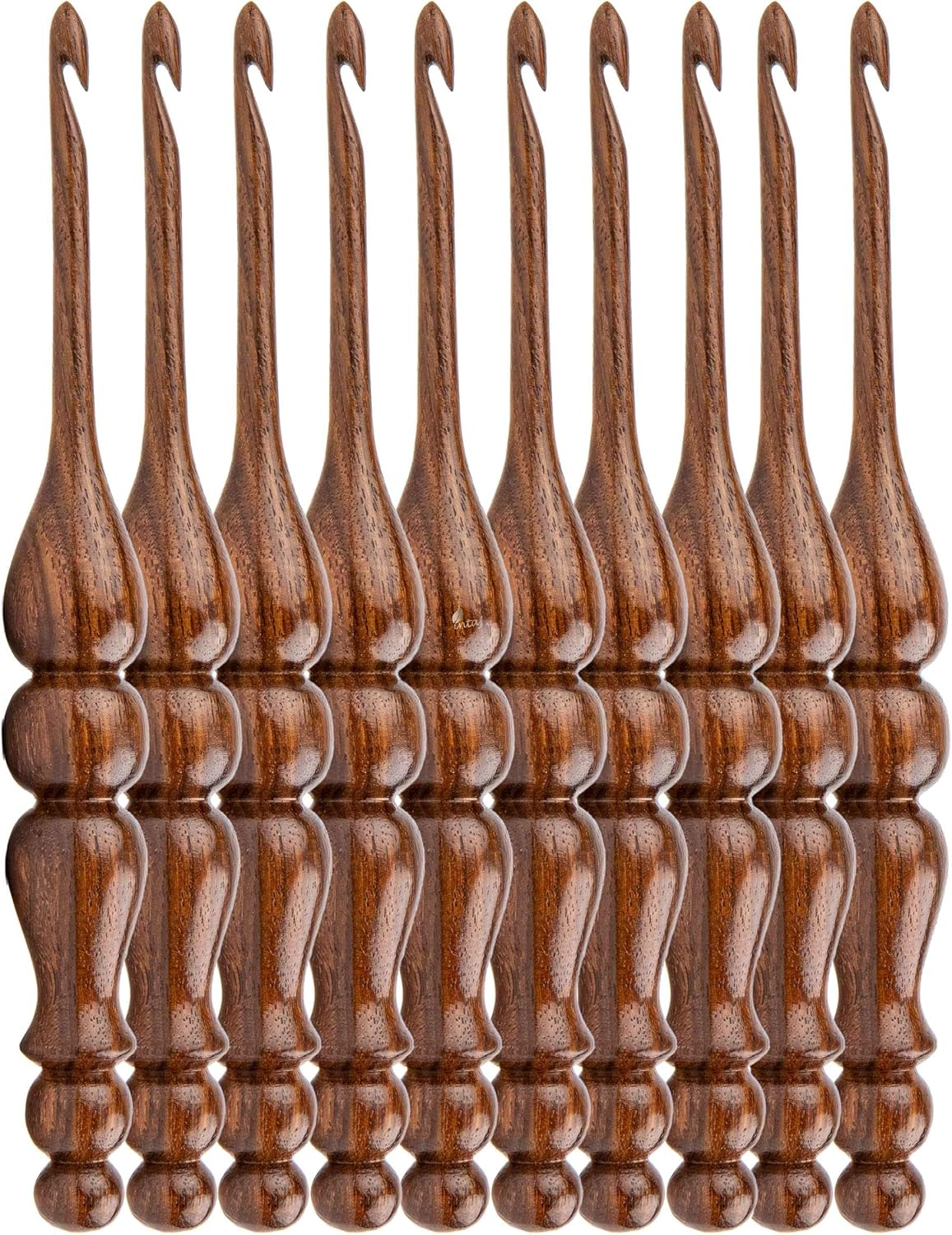 Handmade Wooden Crochet Hook - Rosewood Needle Crochet Hooks Set - Yarn Craft Knitting Needle for Chrocheting Lace Doilies Flower Projects (Set of 10 (7" L), Ergonomic Turned Rosewood)