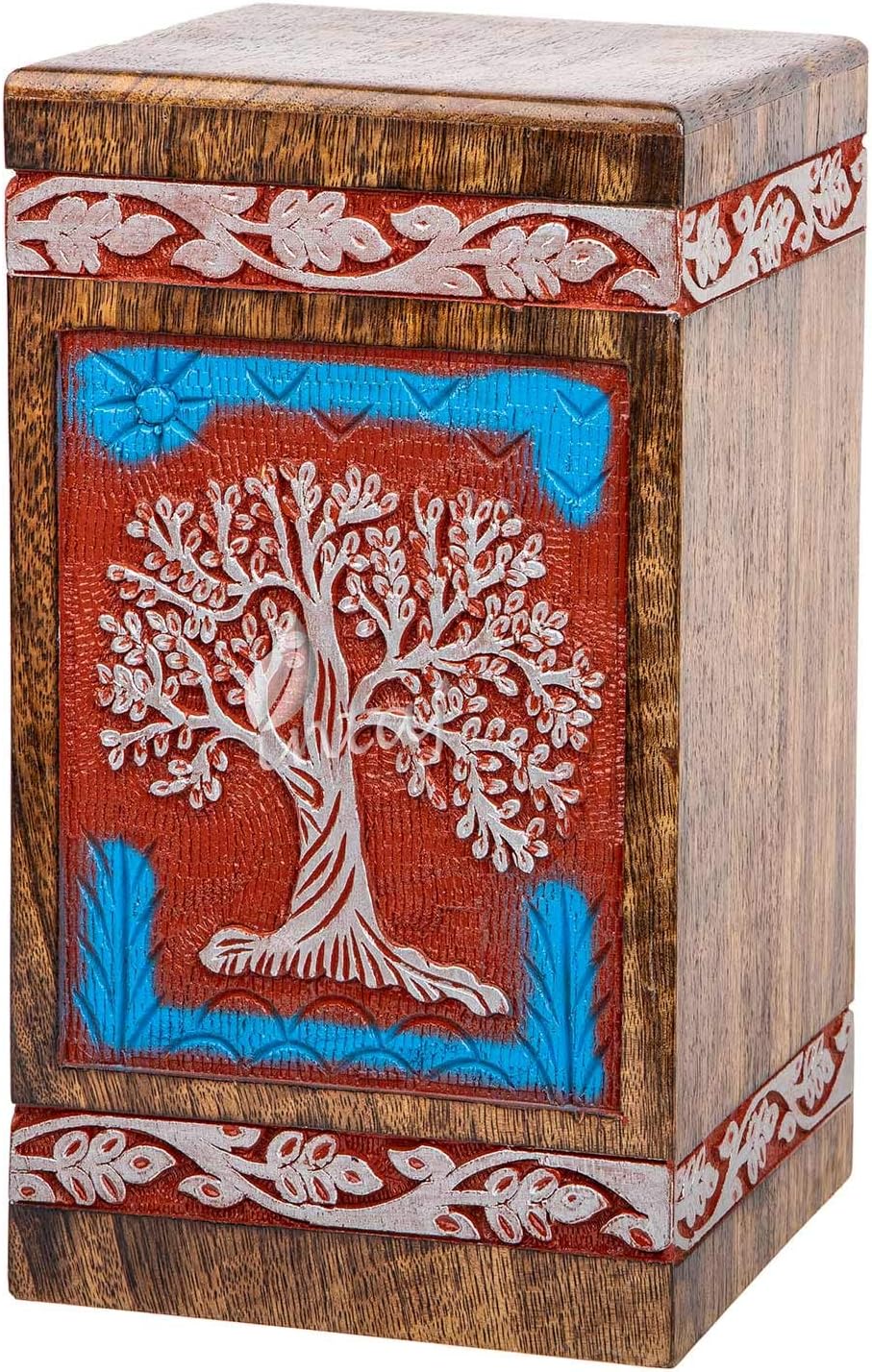 Tree of life Rosewood Urn is truly Hand carved by STAR INDIA CRAFT's Skilled Craftsmen to ensure each CREMATION URN is Unique & Affordable.