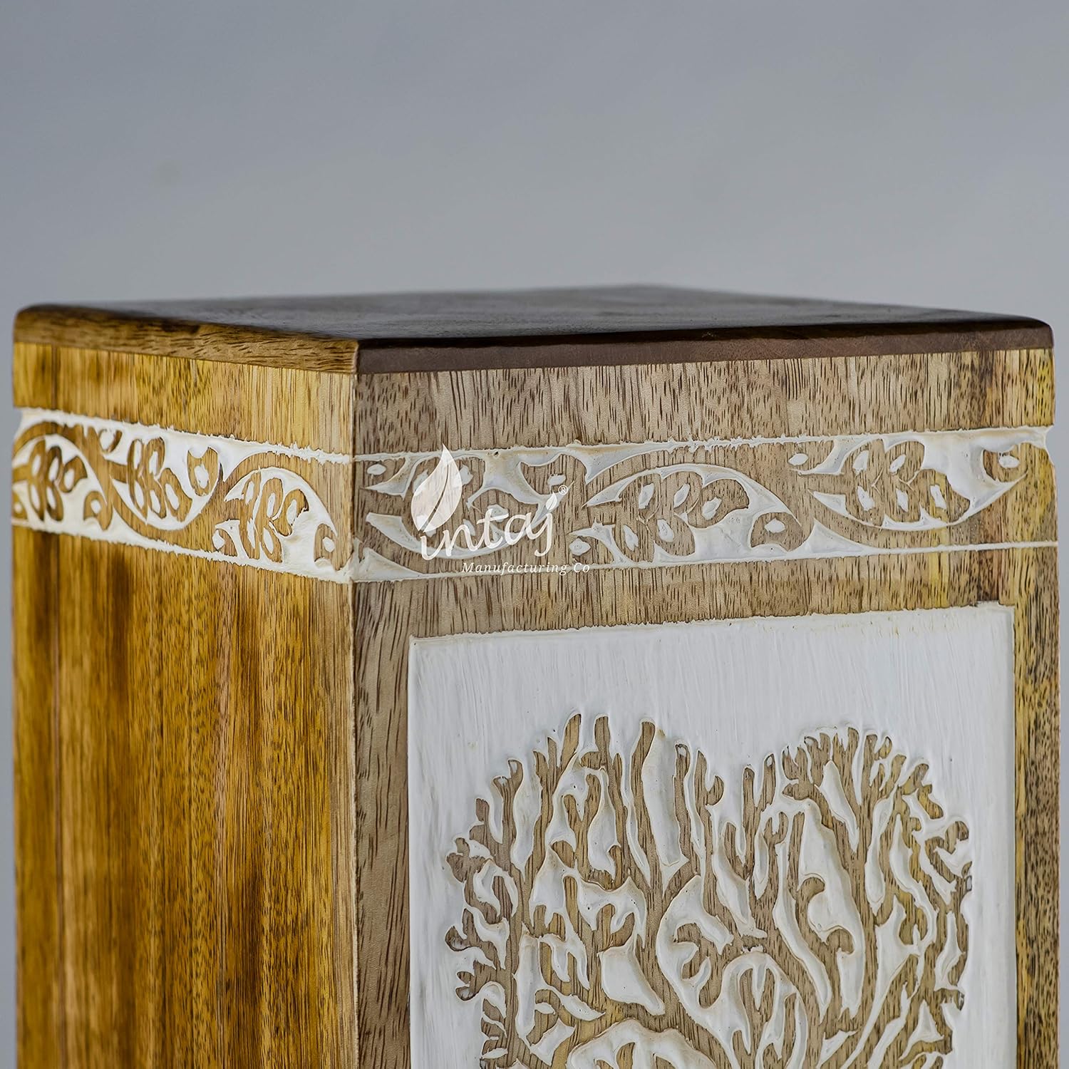 INTAJ Cremation Urns for Human Ashes Adult Male Female, Wooden Tree of Life Urns Box and Casket for Men Women Child, Pets Cat Dog Urn, Burial Funeral Memorial Urns for Ashes