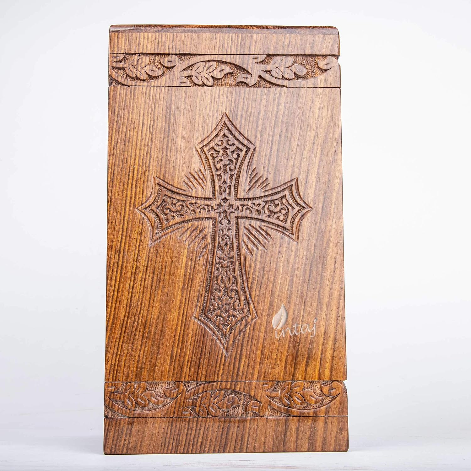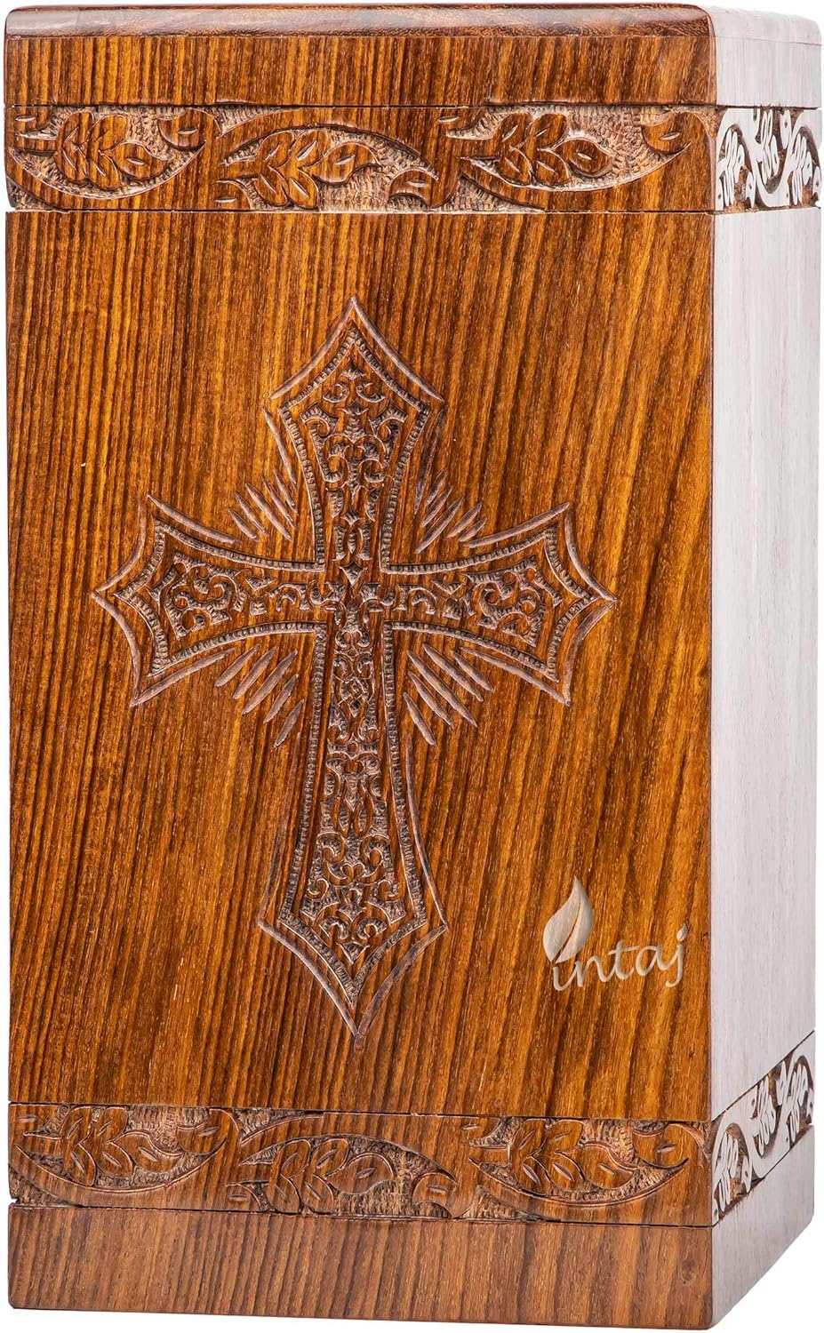 INTAJ Wooden Urn for Human Ashes, Adult Rosewood Grace and Mercy Cross Funeral Cremation Urn for Ashes - Burial Urn Box
