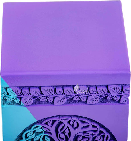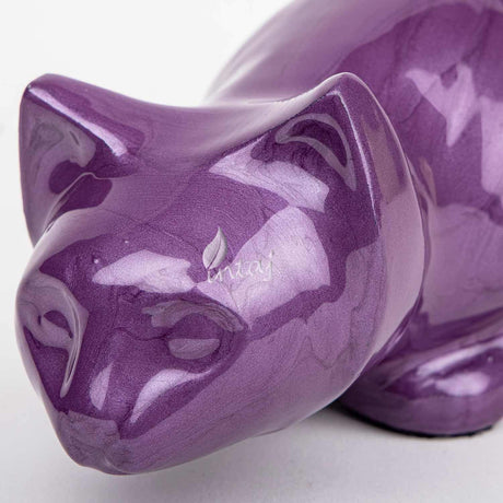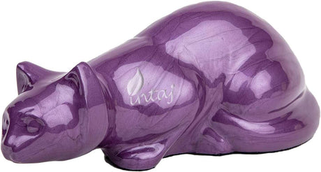 Handcarved Cremation Urn β Purple Cat Design β Suitable for Dogs & Cats β Stnd (9x4.5)