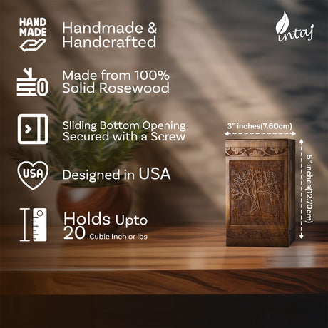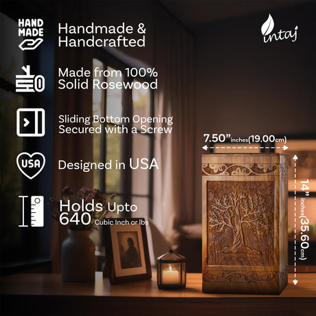 Handcarved Wooden Cremation Urn – Tree of Life – Suitable for Adults – 640lbs Capacity